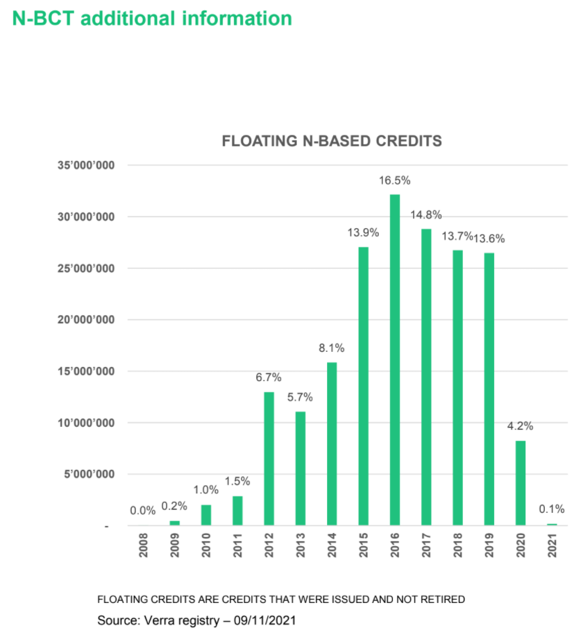 Excludes many vintage years of projects that also have credits for vintages 2008 - 2011 and early start date decreases price differentiation with $BCT and reduces attractiveness for newer credits to enter the pool.